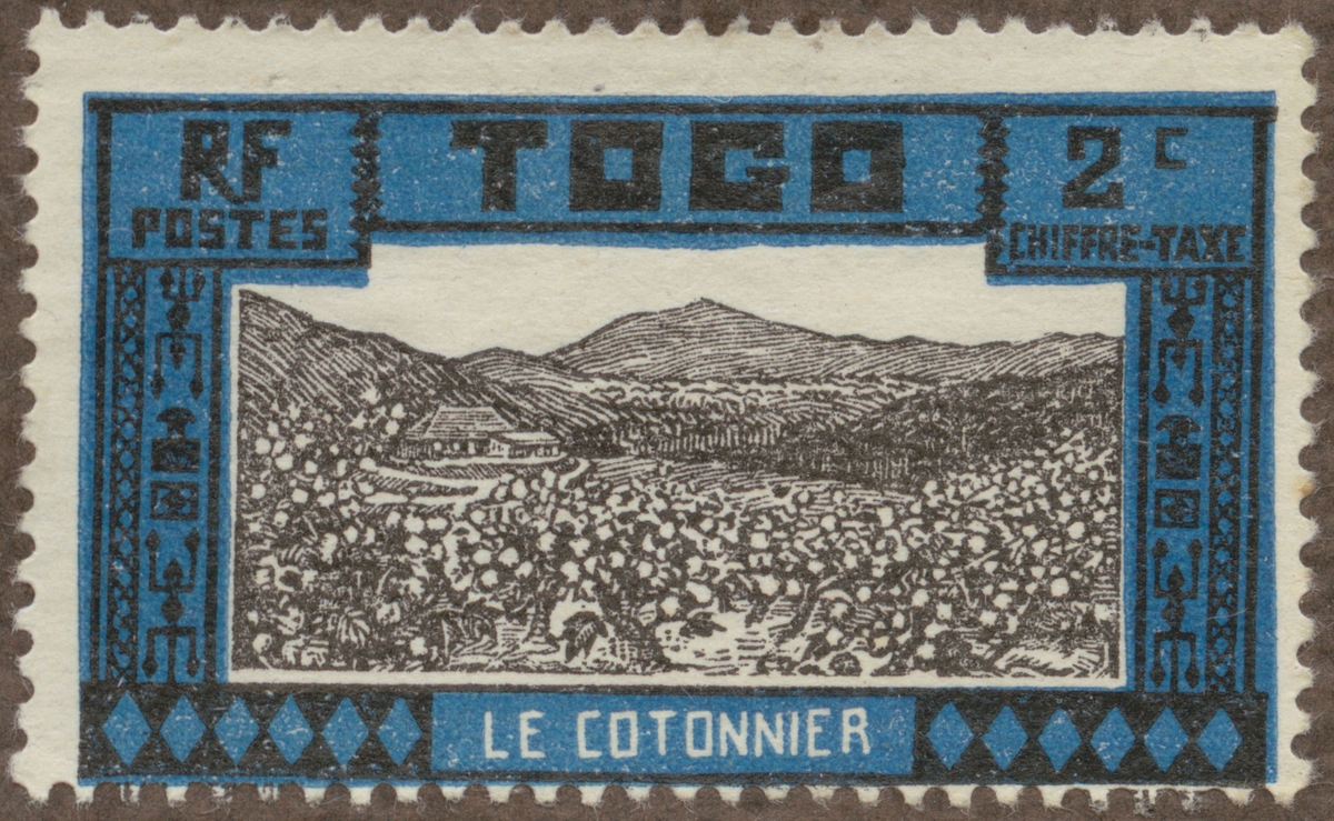Frimärke från Togo, 1925. Motiv av bomullsplantage i Franska Togo, Västafrika.