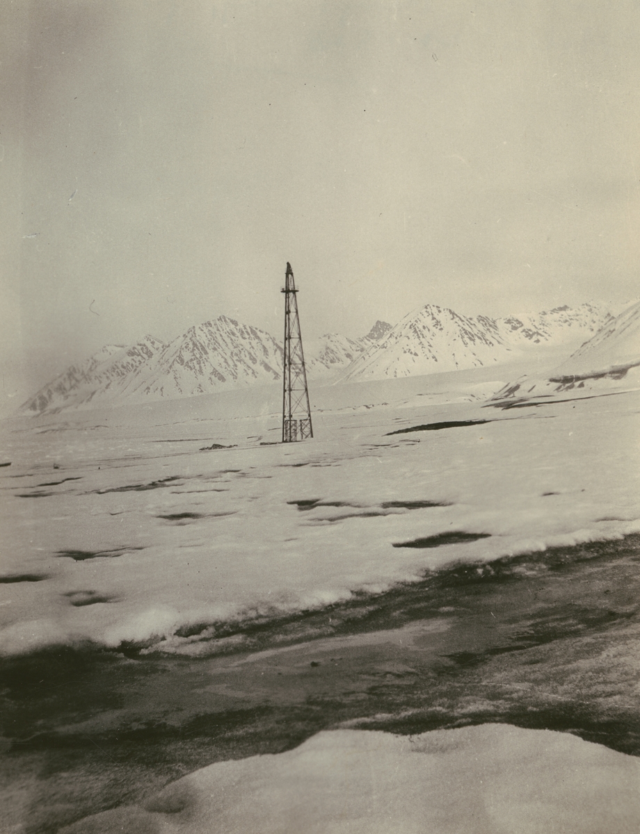 Fotografi från svenska undsättningsexpeditionen 1928. Motiv av förtöjningsmast i King's Bay.