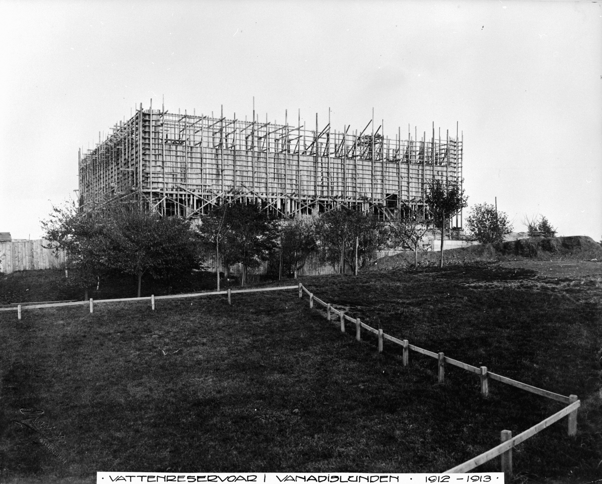 Byggherre: Byggnadsaktiebolaget Contractor, Stockholm. Vattenreservoar i Vanadislunden.