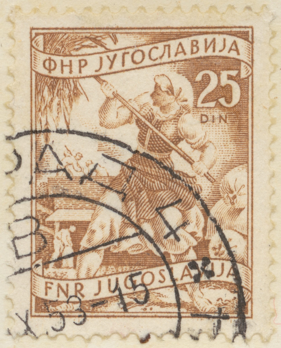 Frimärke från Jugoslavien, 1952. Motiv av skördekvinna.