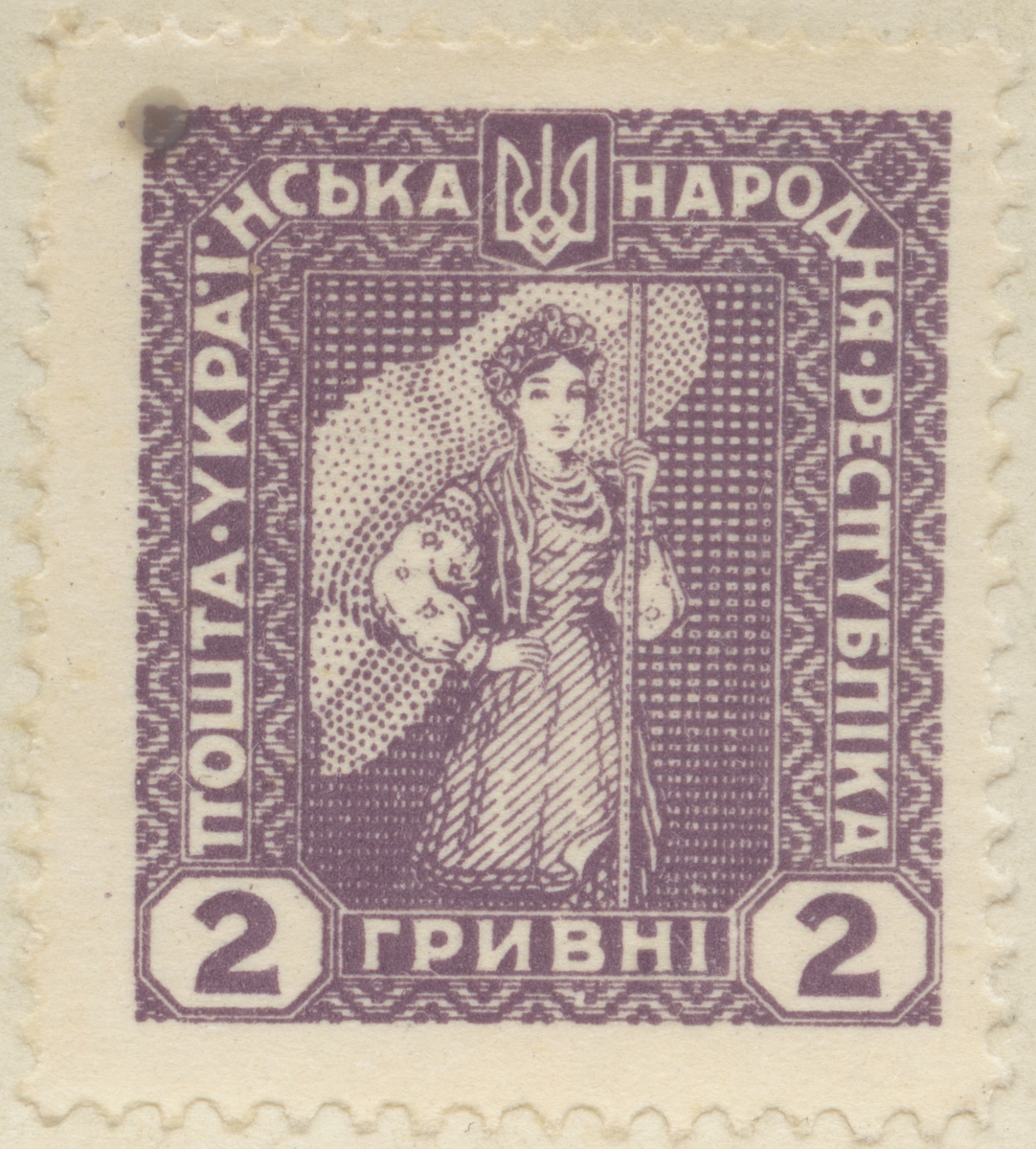 Frimärke från Ukraina, 1921. Motiv av kvinnodräkt.