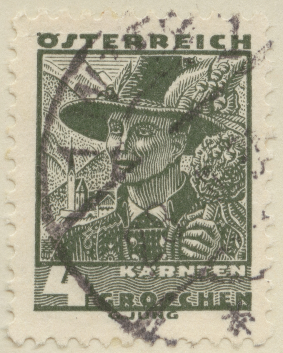 Frimärke från Österrike, 1934. Motiv av mansdräkt, Kärnten.
