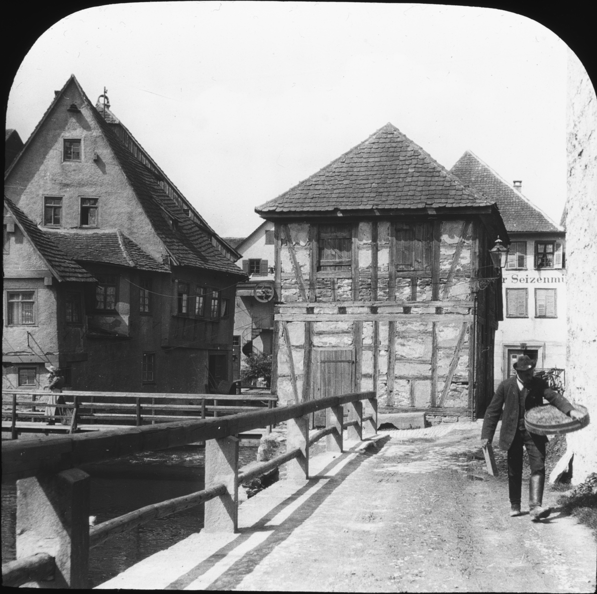 Skioptikonbild med gatumotiv från Schwäbisch Hall.