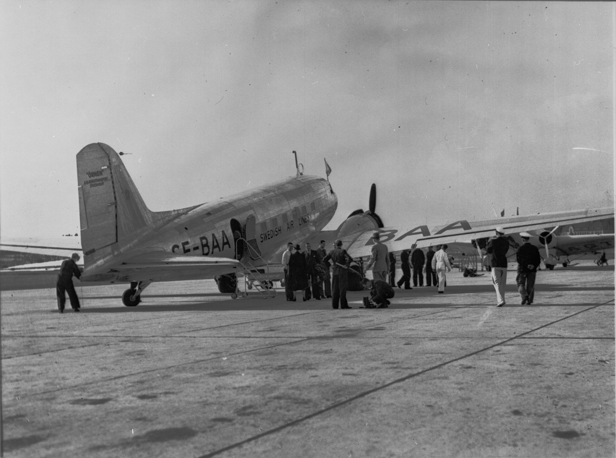 Start av ett ABA-Douglasplan fån Bromma på linjen till Moskva.