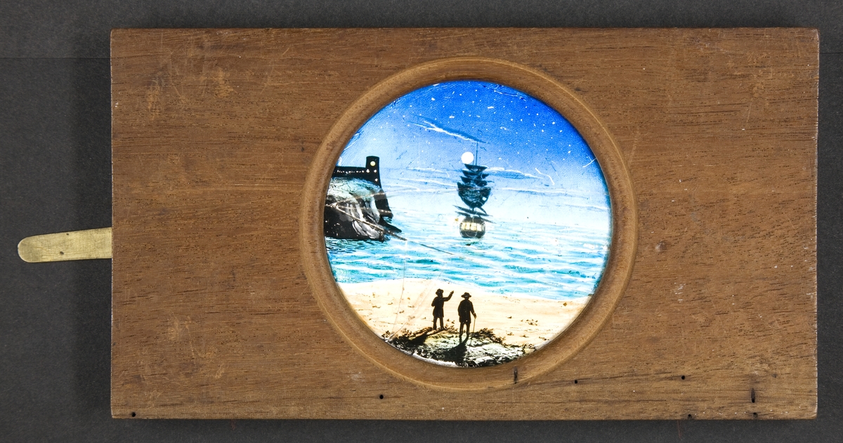 Laterna magica bild, målad i färg på glasskiva.
