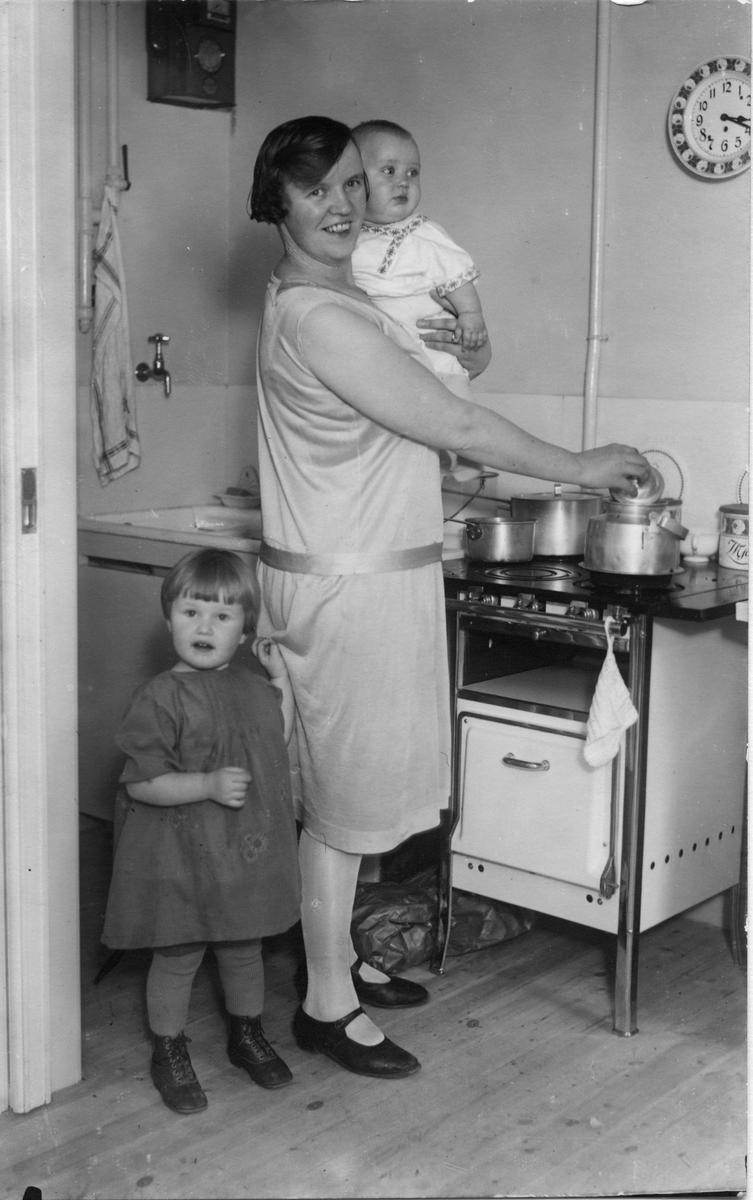 HSB Hus. Köksinteriör från Kv. Ljuset vid Kungsklippan på Söder. Bild till Vår Bostad nr. 21 1929.