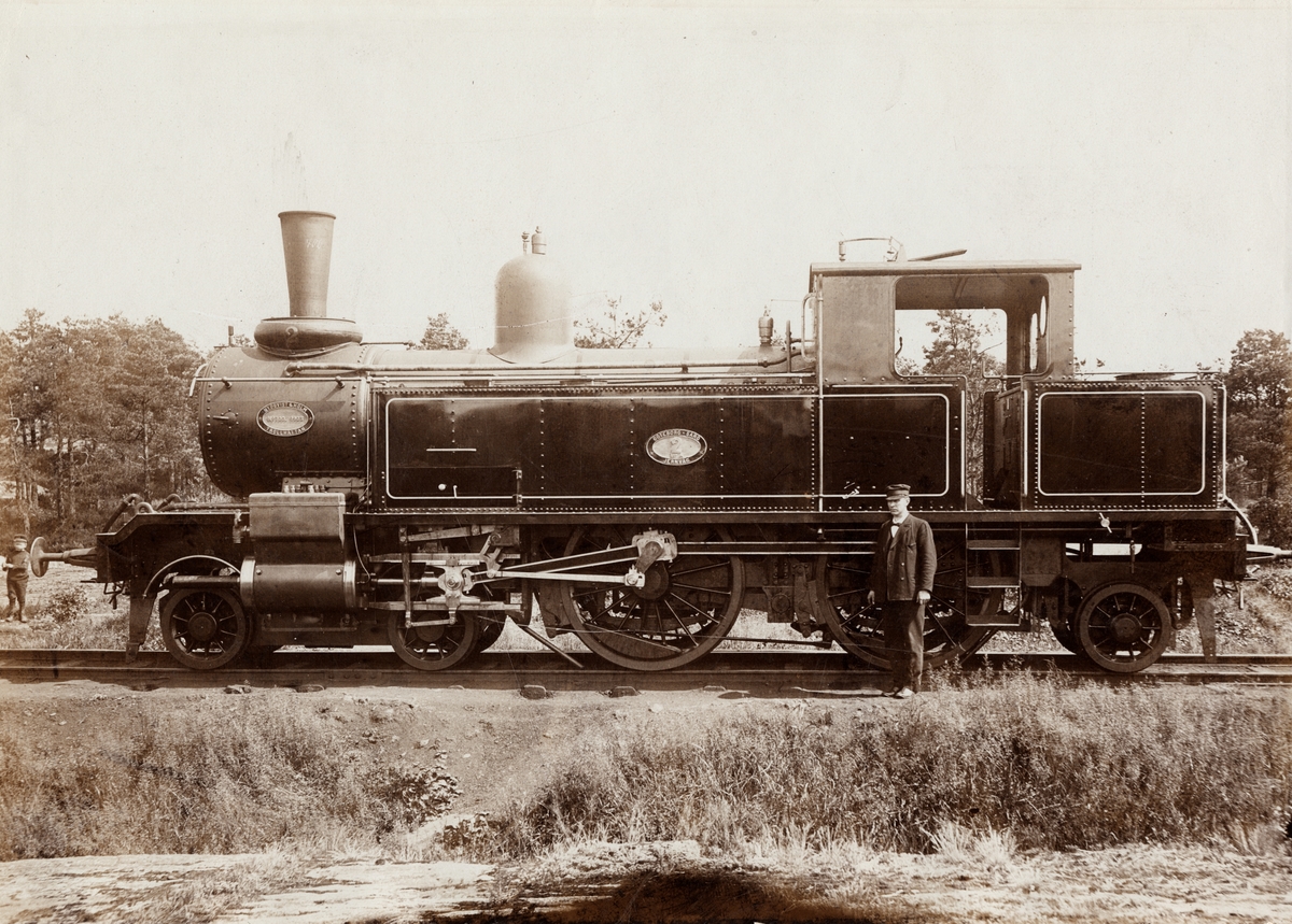Lok nr. 2 vid Göteborg - Särö Jernväg (Järnväg). Tillverkat vid Nydqvist & Holm, 1903. No 700.