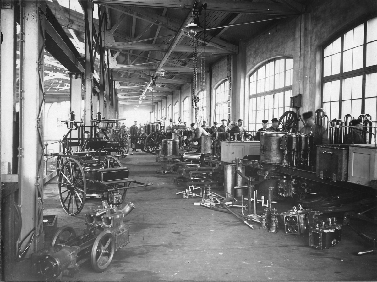 Ludwigsbergs och Luth & Roséns verkstäder i Stockholm. Monteringssalen för sprutor.