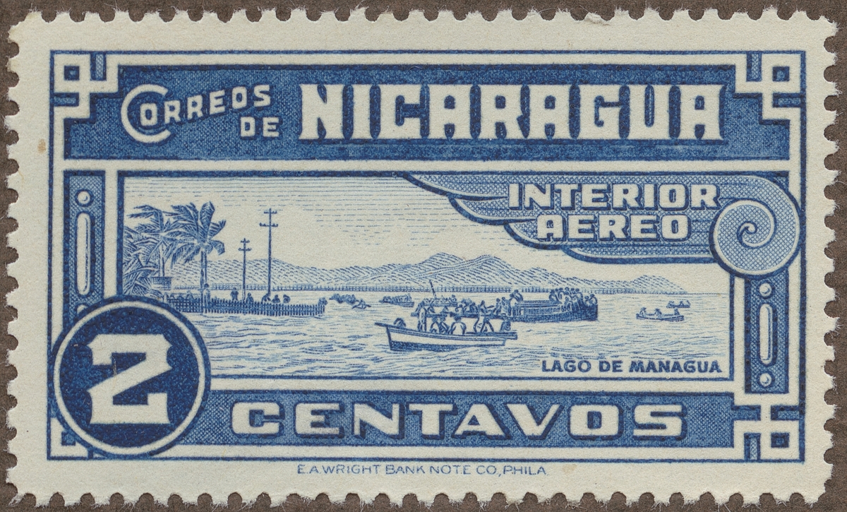 Frimärke från Nicaragua, 1939. Motiv av Diverse båtar på sjön Managua.
