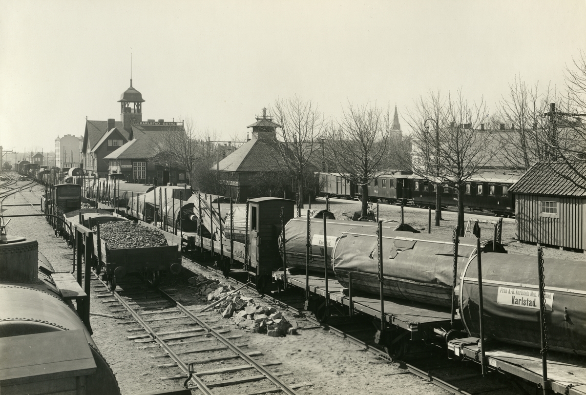 45 järnvägsvagnar med maskineri för 2 torkmaskiner för cellulosa. Tillverkade vid KMW för leverans till Puget Sound Pulp & Timber Comp., USA. Ur album för KMW. AB Karlstads Mekaniska Werkstad.