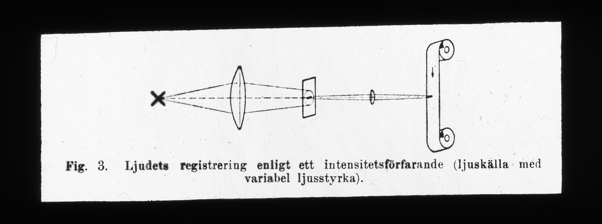 Skioptikonbild från Institutionen för fotografi vid Kungliga Tekniska Högskolan. Använd av professor Helmer Bäckström som föreläsningsmaterial. Bäckström var Sveriges första professor i fotografi vid Kungliga Tekniska Högskolan i Stockholm 1948-1958.