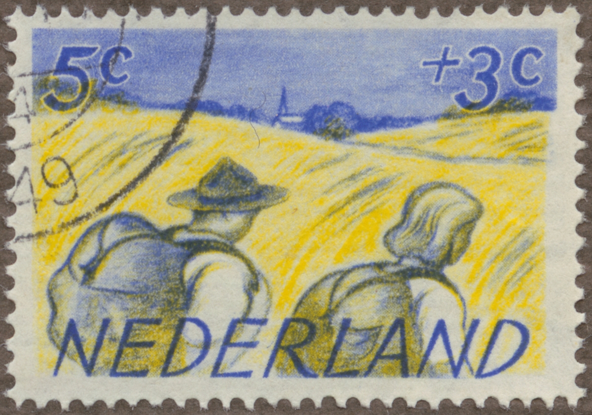 Frimärke från Nederländerna, 1949. Motiv av Sädesfält