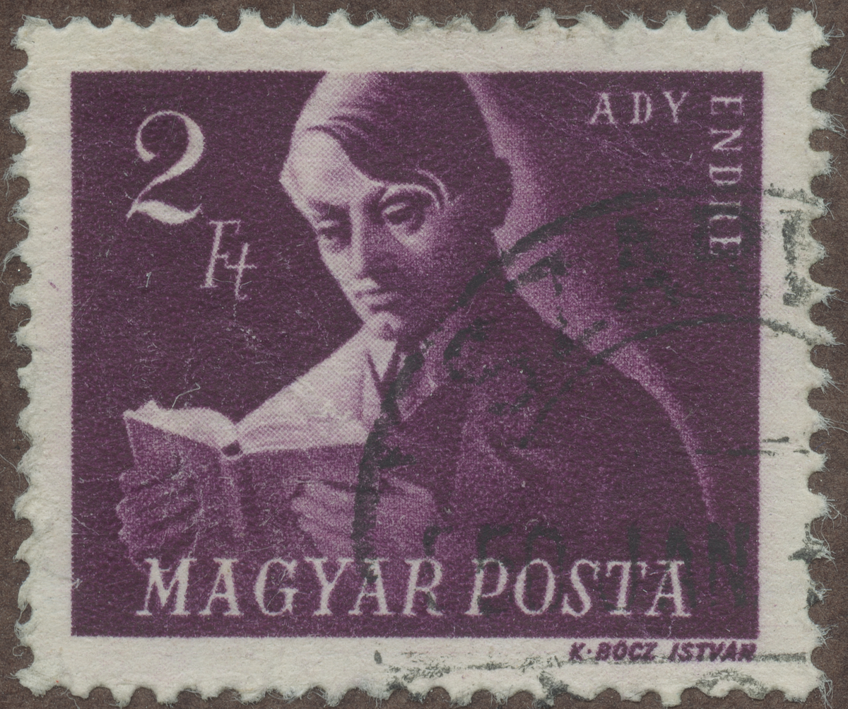 Frimärke från Ungern, 1947. Motiv av Endre Ady 1877-1919 Ungersk skald.