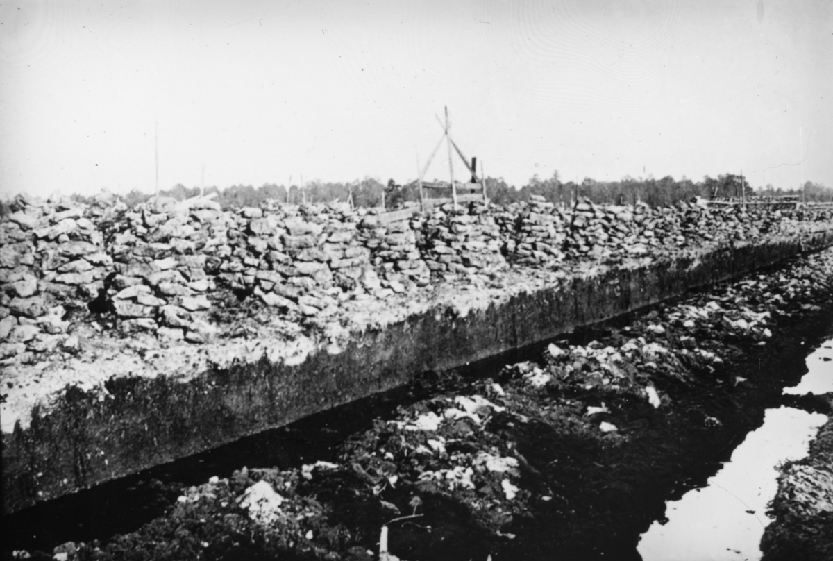 Skioptikonbild med motiv av torvtorkning på okänd mosse.