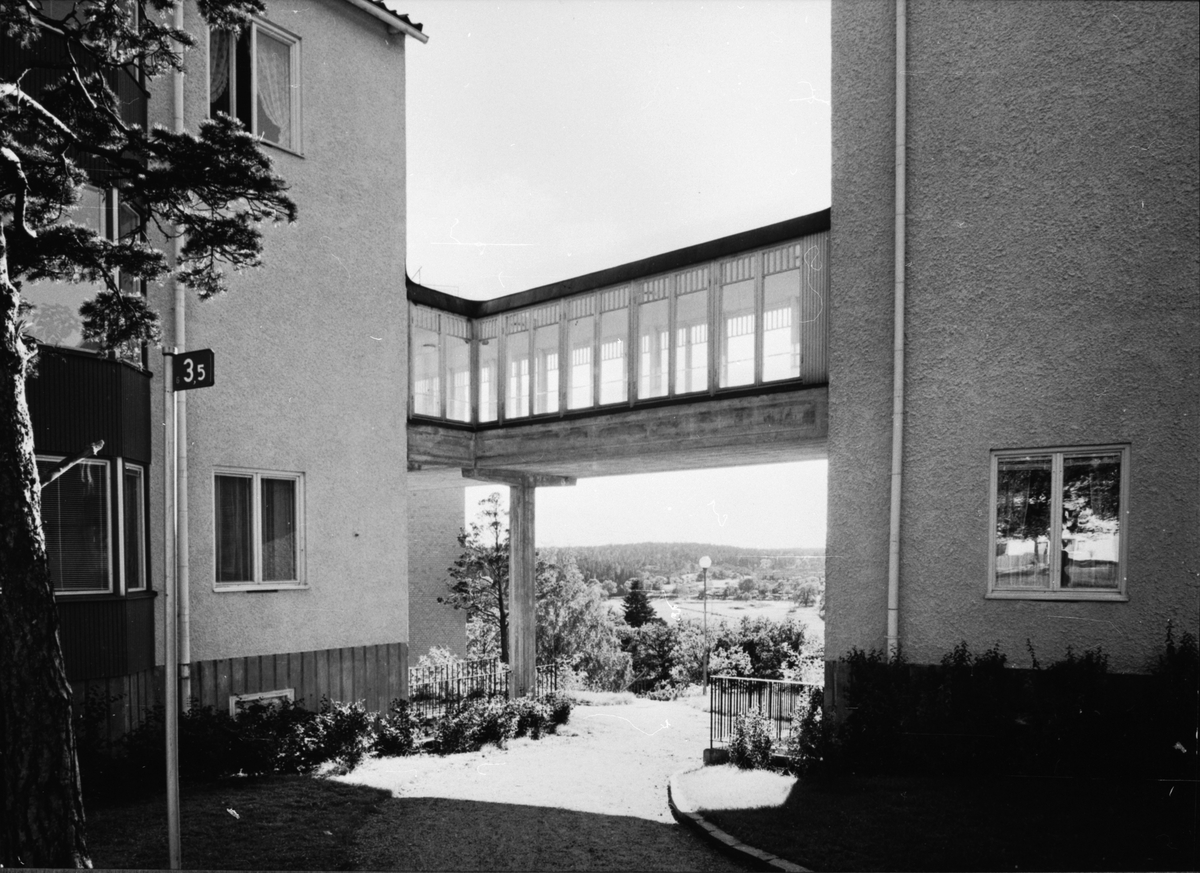 Byggherre: Byggnadsaktiebolaget Contractor, Stockholm. Kollektivhus. Höghuset ligger som en sammanknutande länk mellan mellan två nivåskilda husgrupper. Arkitekter SAR Sven Backström och Leif Reinius.