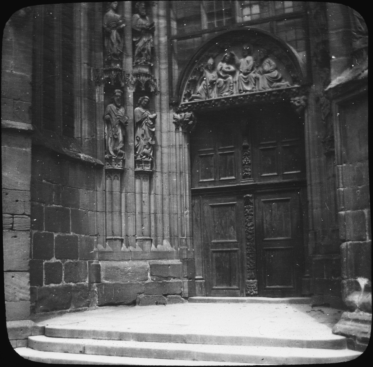 Skioptikonbild med motiv av porten till katedralen i Worms?