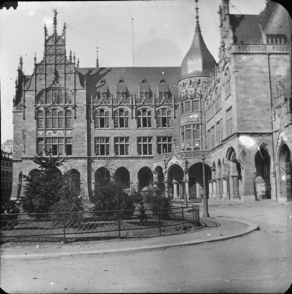 Skioptikonbild med motiv av pkänd byggnad i Wiesbaden.