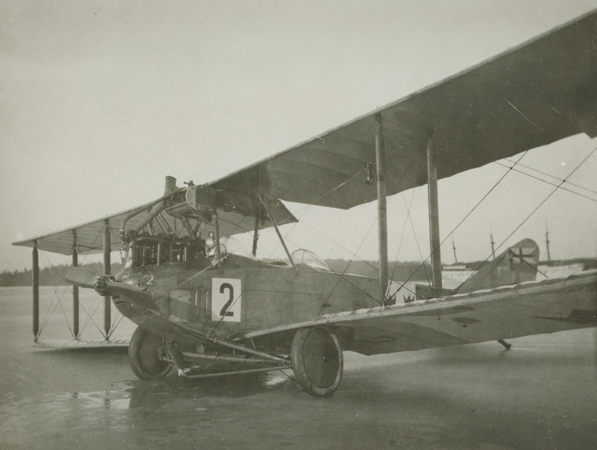 Diverse bilder från Fred Goldbergs samling. Motiv av biplan tillhörande Marinens vinterflygskola, 1921.