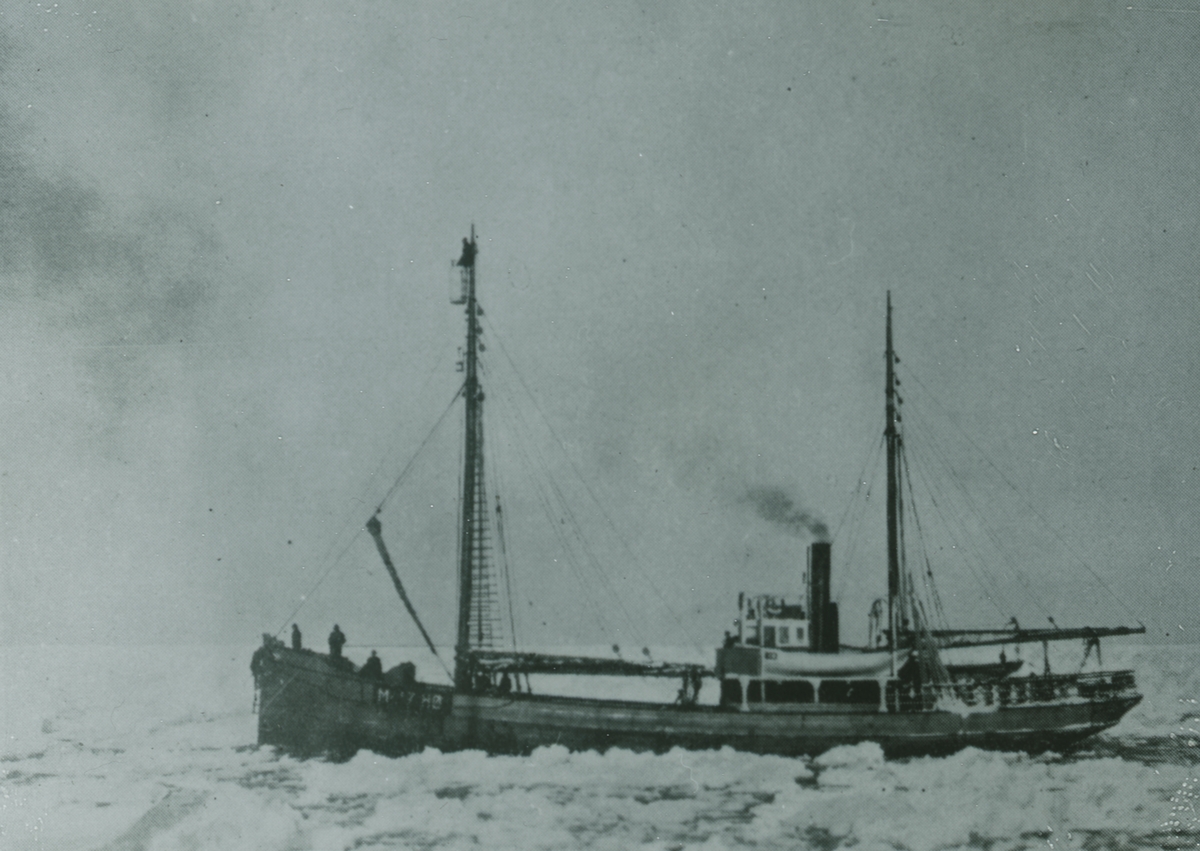 Glasnegativ med motiv av fartyg som åker genom is.