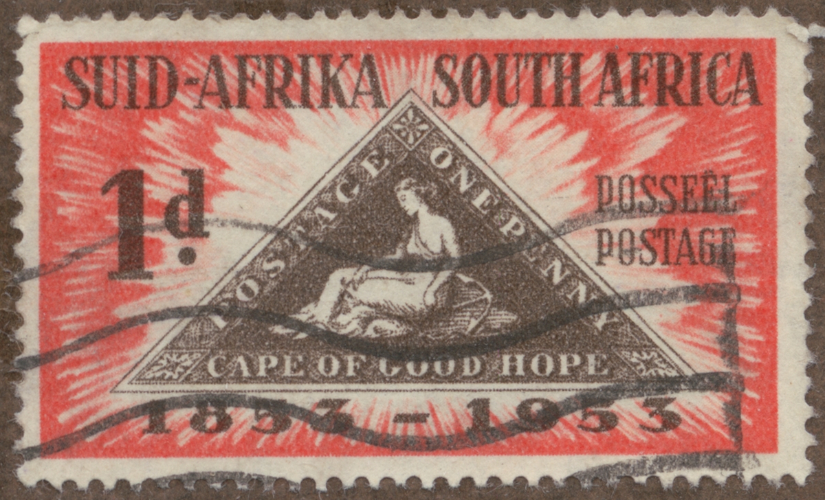 Frimärke från Syd Afrika, 1953. Motiv av Triangelmärke av 1853: Goda Hopps Udden Goda Hopps Uddens Frimärken 100 år: 1853-1953.