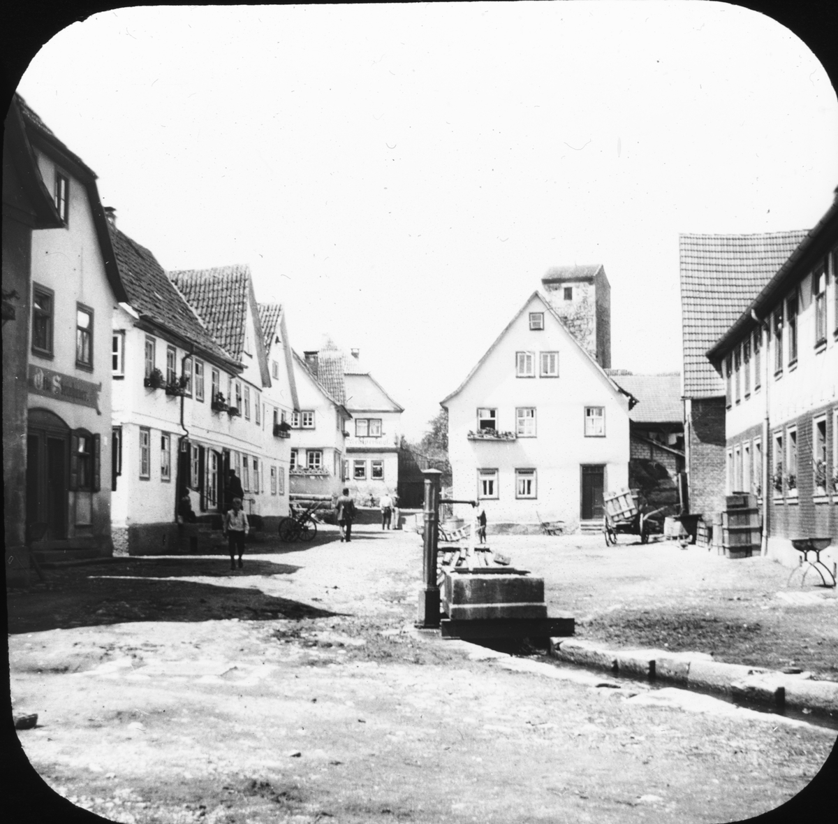 Skioptikonbild med motiv från Fladungen. I bakgrunden Thürnersturm.