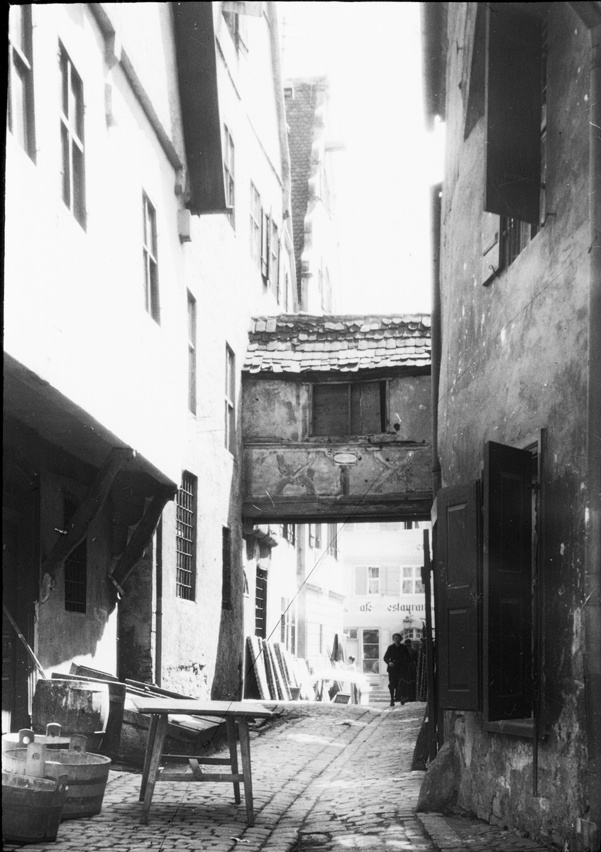 Skioptikonbild med motiv från gata i Dinkelsbülh.