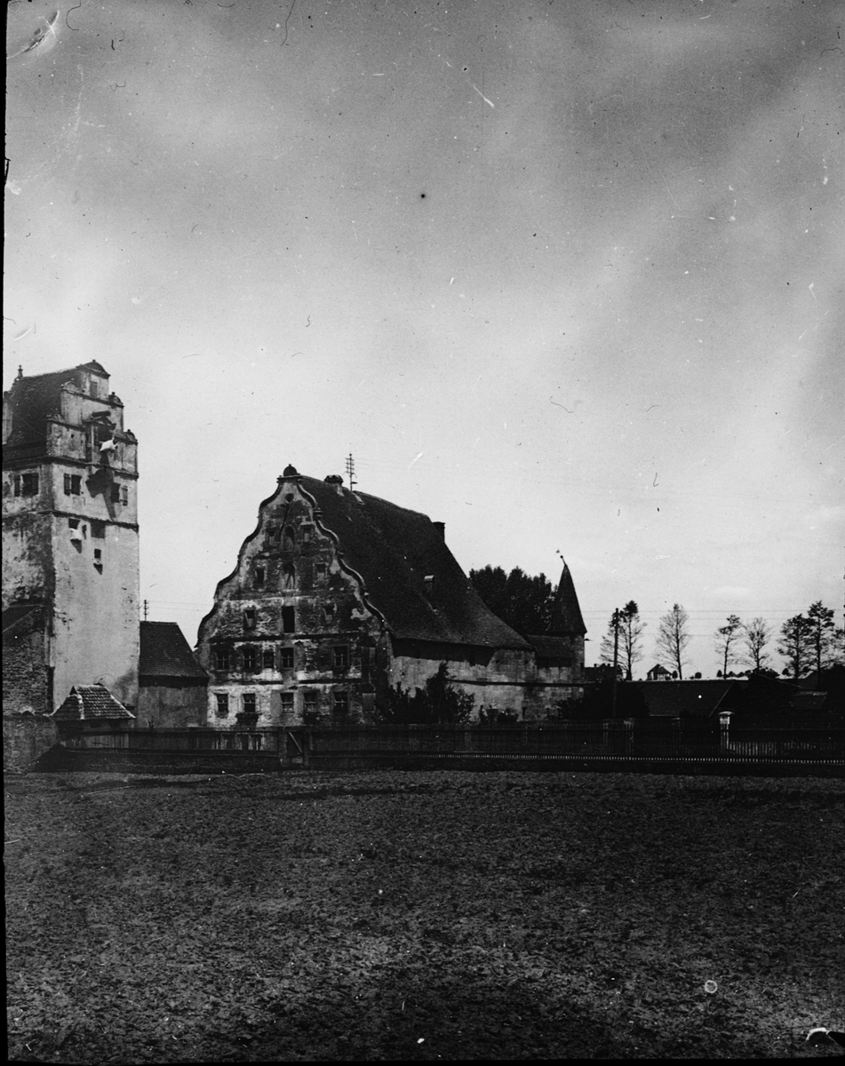 Skioptikonbild med motiv av Nörlingen Thor, port i stadsmuren, Dinkelsbülh.