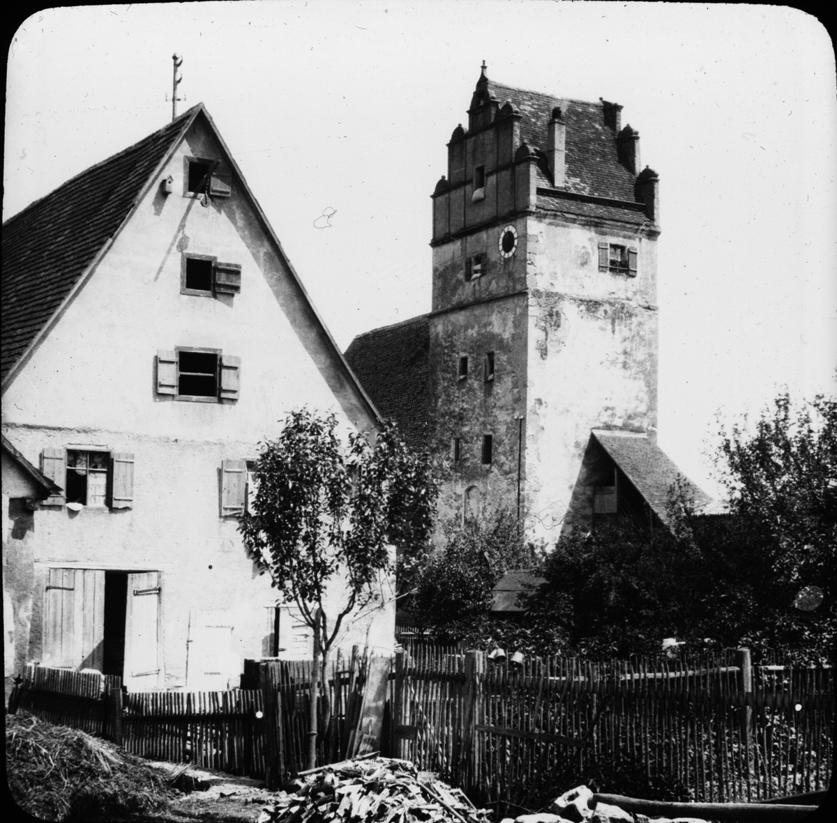 Skioptikonbild med motiv av Nörlingen Thor, port i stadsmuren, Dinkelsbülh.
