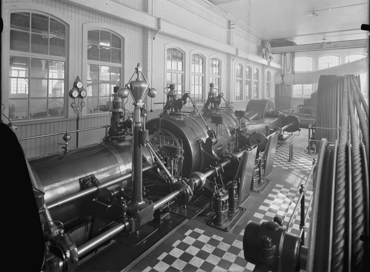 Ventilångmaskin (egen produkt), installerad i den egna ångpannecentralen. J & C G Bolinders Mekaniska Verkstads AB.
