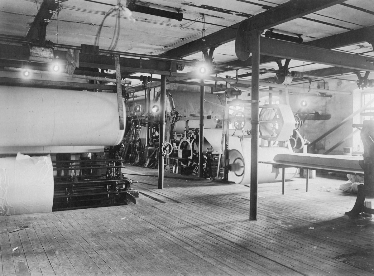 Koppoms pappersbruk. Främre delen av 120 tum respektive 80 tum pappersmaskin.