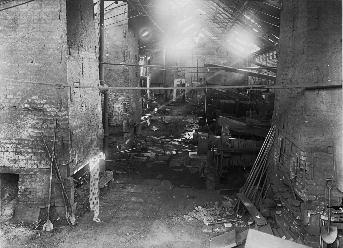 Interiör av vallonsmedjan, Gysinge Bruk, 1904. Smedjan nedlades och revs samma år.