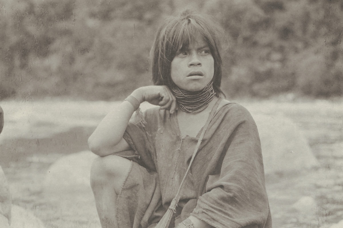 Fotografi från kuvert märkt med "Ernst Nordenskjöld". Motiv av unga man i djungel.