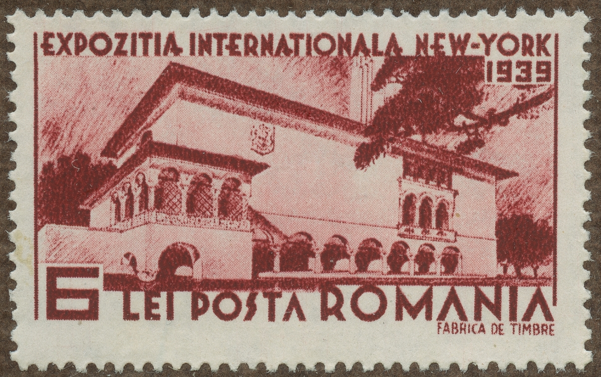 Frimärke från Rumänien, 1939. Motiv av Rumänsk byggnadsstil utställningen i New York 1939