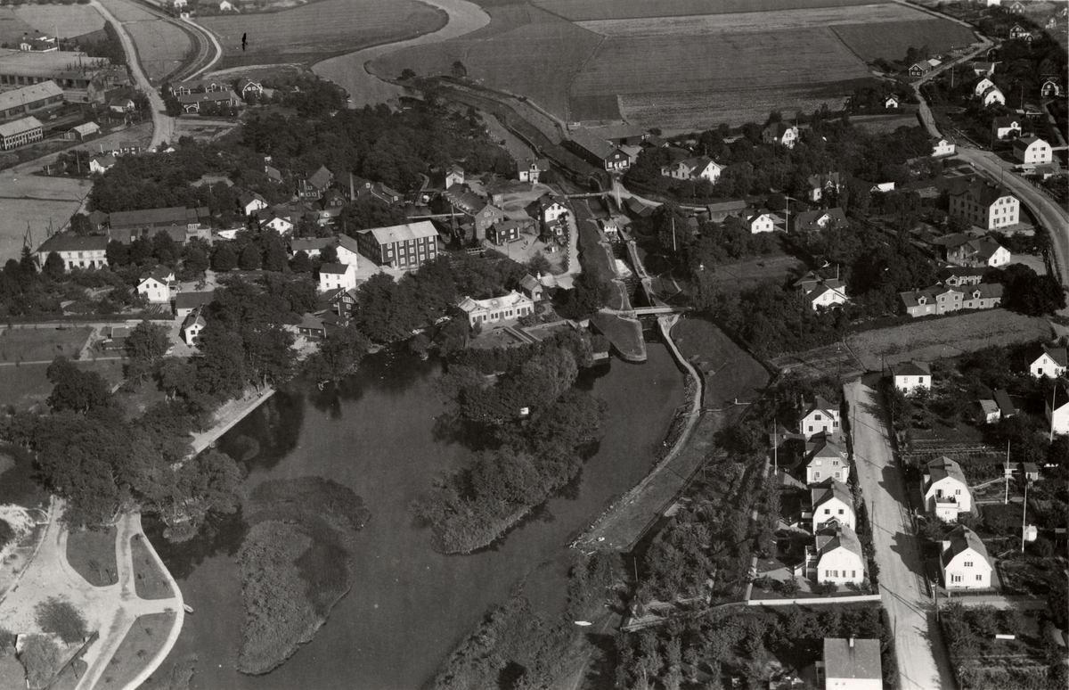 Flygfotografi över AB Svenska Järnvägsverkstäder i Tannefors.