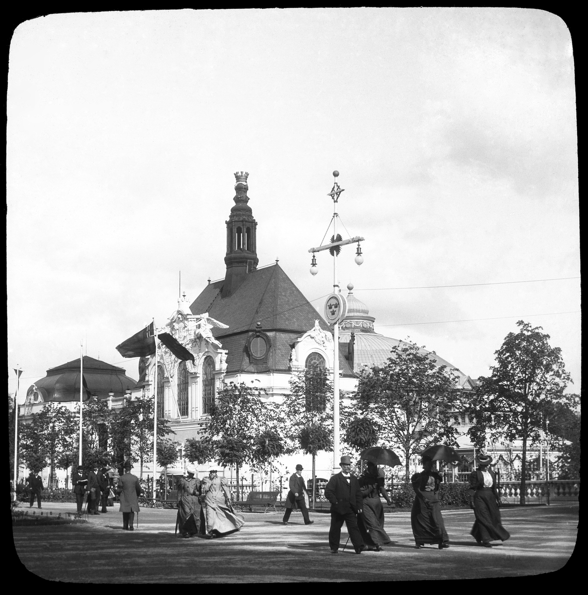 Skioptikonbild med motiv från Allmänna Konst- och Industriutställningen i Stockholm 1897.