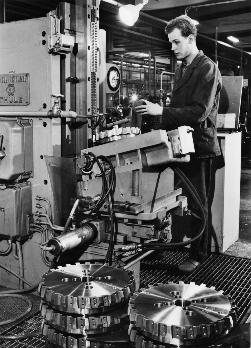 Sandvikens Järnverk (Sandvikens Jernverk). Stålforskningens främsta uppgifter är att utveckla och förbättra företagets produkter och tillverkningsmetoder. För det ändamålet har forskarna bland annat ett elektronmikroskop (bilden) till sin hjälp, vilket förstorar upp till 200 000 gånger.