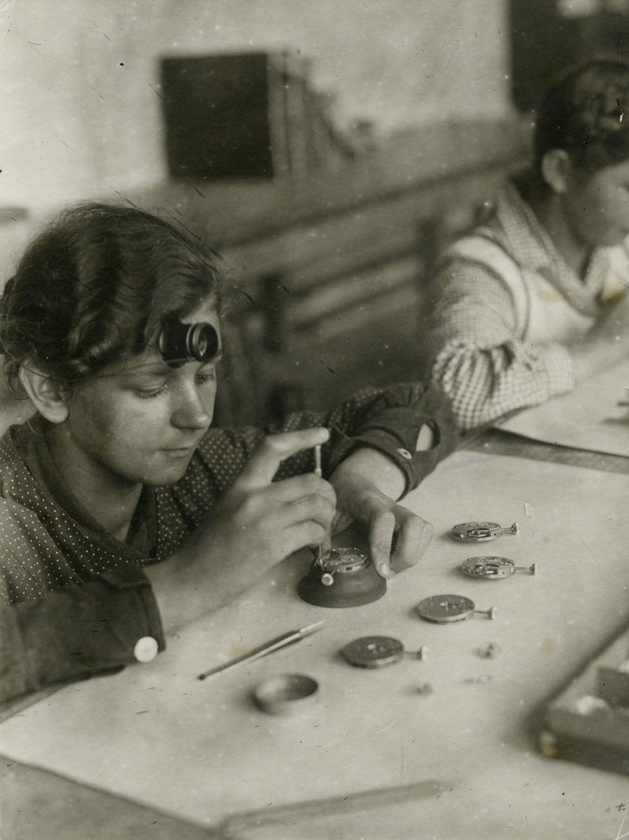Titel: Ur tillverkning på fabrik i Tyskland. (För mer info se originalet för text på Tyska).