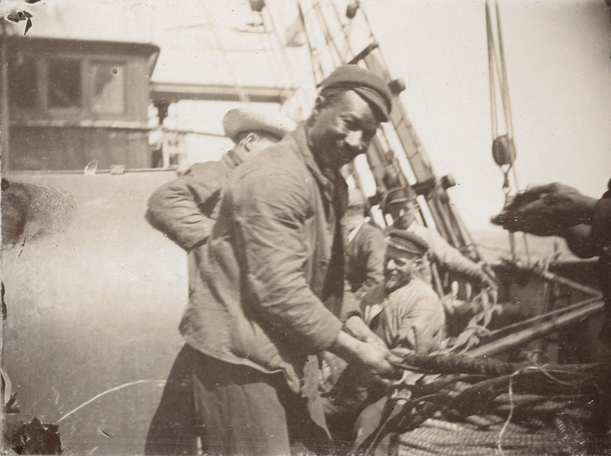 Ytterbeklädnad pålägges på kabel. Ur album: Kabelexpedition Gotland - Dalarö 1898.