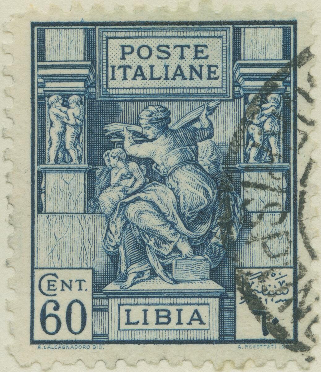 Frimärke från Libyen, 1924. Motiv av Den Libyska Sibyllan av Michelangelo