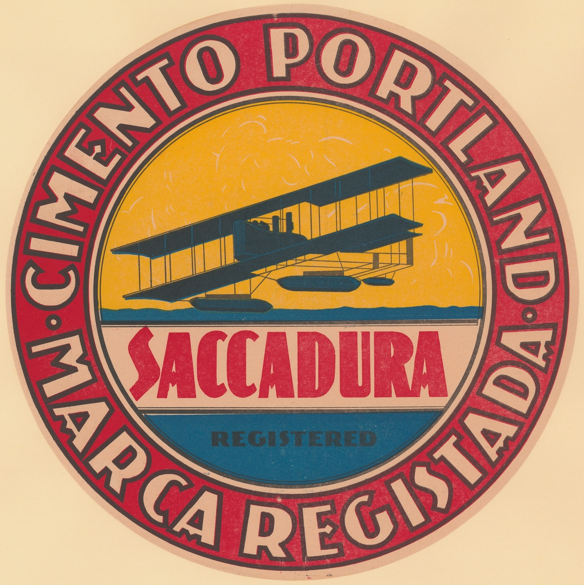 Fabriksmärke för cementpåsar. Saccadura. Portland Cement.