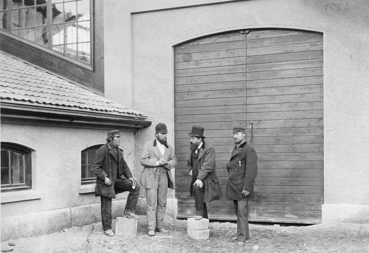 Carl Wittenström (i hög hatt) med sällskap vid Domnarfvets jernverk (Domnarvets järnverk) 1873-1877.