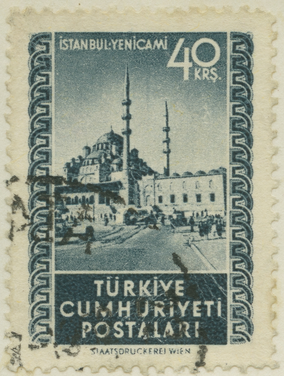 Frimärke från Turkiet, 1953. Motiv av moskéen i Istanbul.