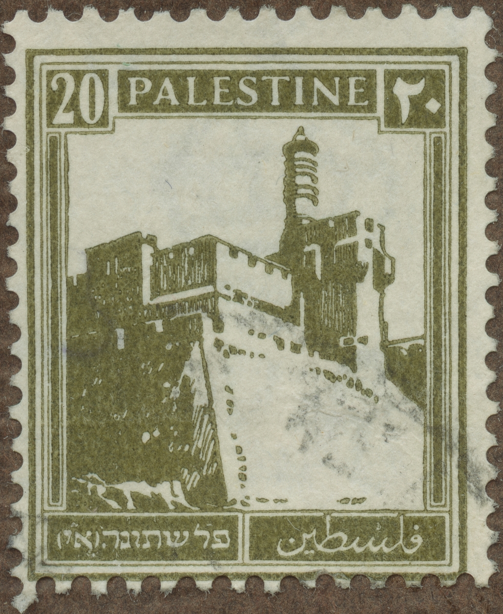 Frimärke från Palestina, 1927. Motiv av Citadellet Jerusalem