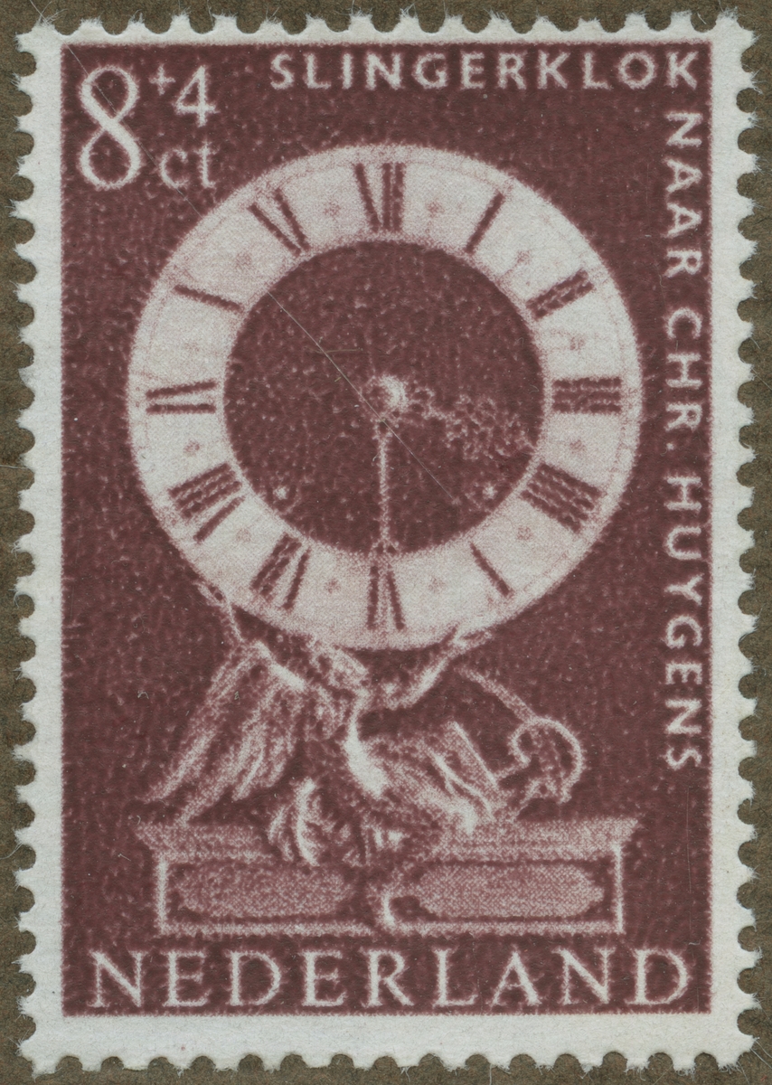 Frimärke ur Gösta Bodmans filatelistiska motivsamling, påbörjad 1950. Frimärke från Nederländerna, 1962. Motiv av Pendyl "konstruerad av urmakaren Johannes van Ceulen efter princip av Fysikern Christian Huygens (1629 - 1695). -Från Rijksmuseum voor de Geschiedenis der Natuurwetenschappen, Leyden. -Museum serie."