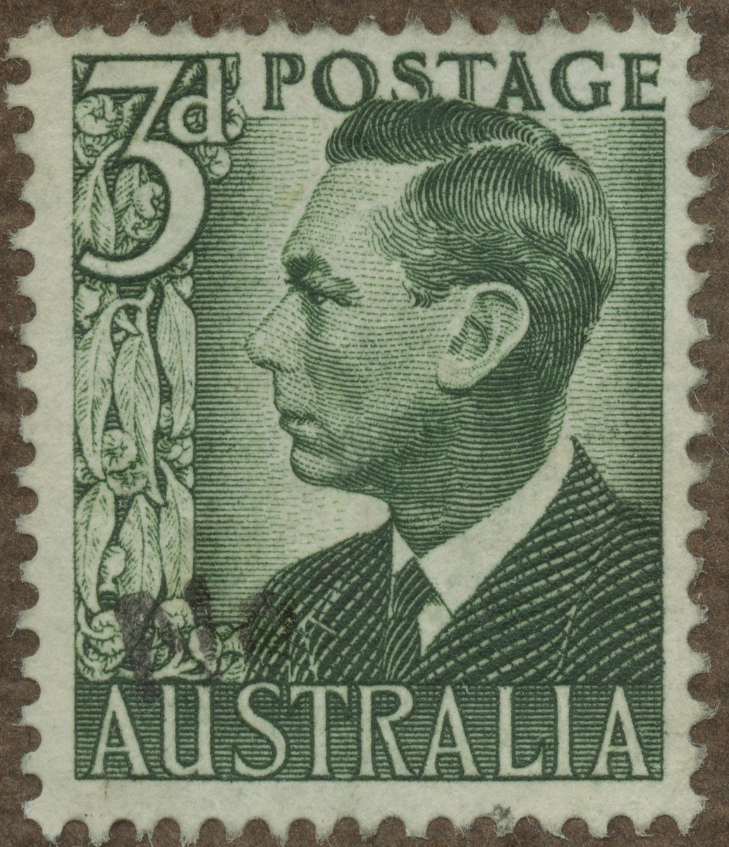 Frimärke från Australien, 1951. Motiv av George VI Kung av England