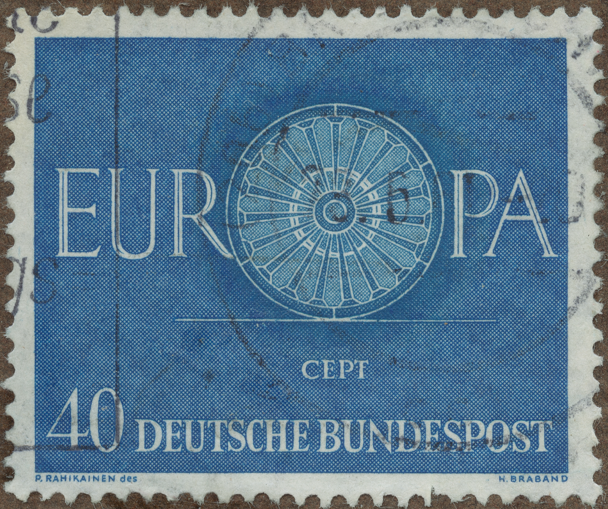 Frimärke från Väst-Tyskland, 1960. Motiv av Europa- frimärke: samarbete i Europa