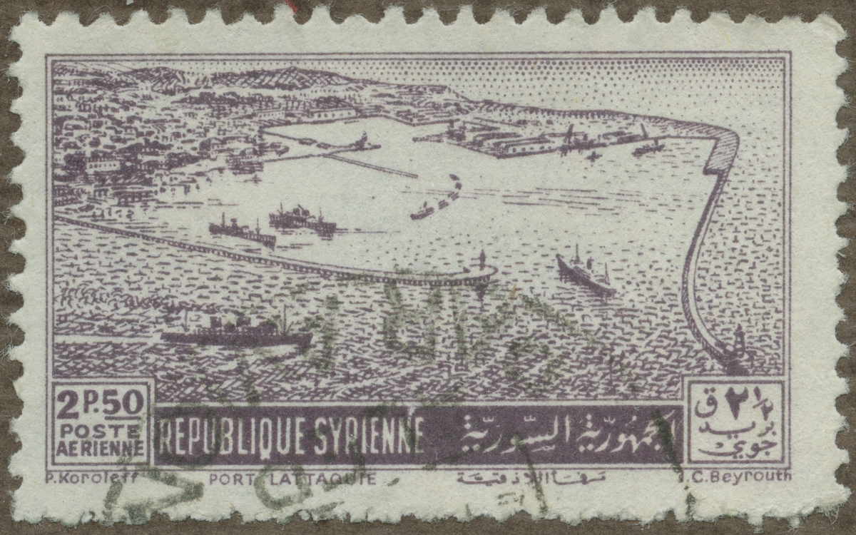 Frimärke från Syrien, 1951. Motiv av Den syriska hamnen Lattaquié