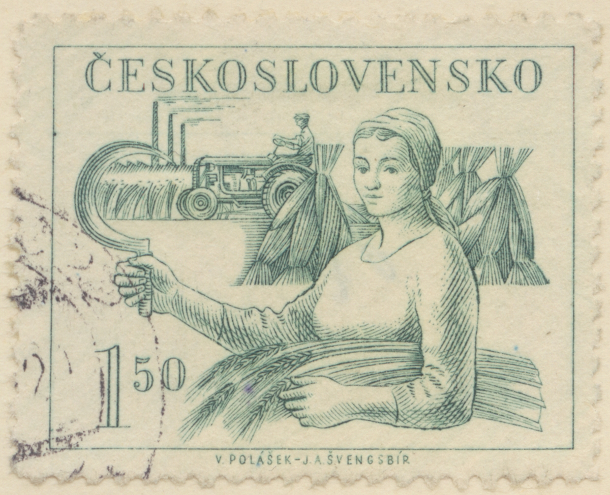 Frimärke från Tschechoslovakiet, 1949. Motiv av Skördearbeterska