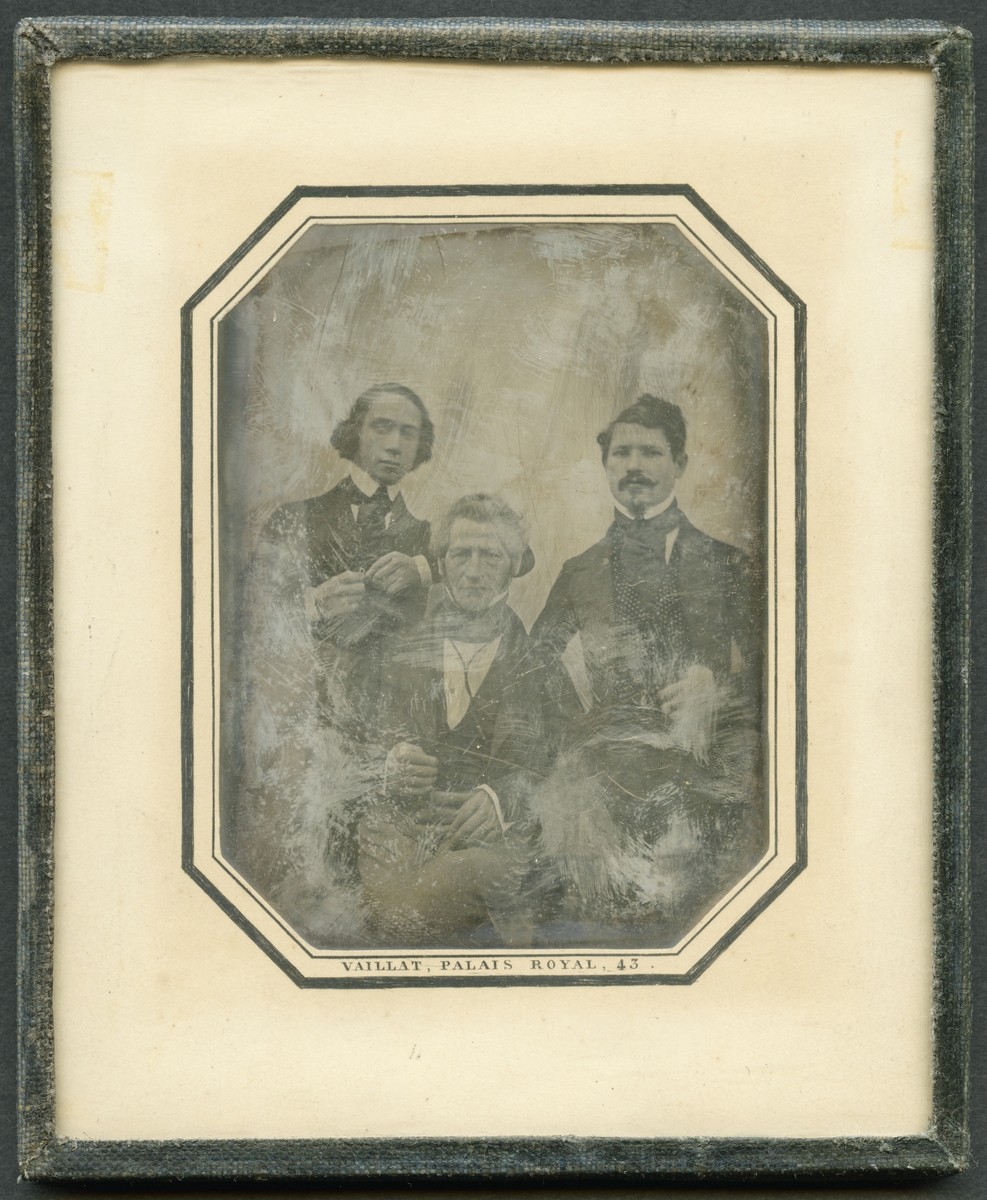 Daguerreotyp. Porträtt av Industriidkaren Salomon, Ludvig Lamm (1786-1857) med sönerna Jacques (1817-1891) och Martin (1824-1878). Bilden är tagen när Jacques arbetade i firman Cail & Co.