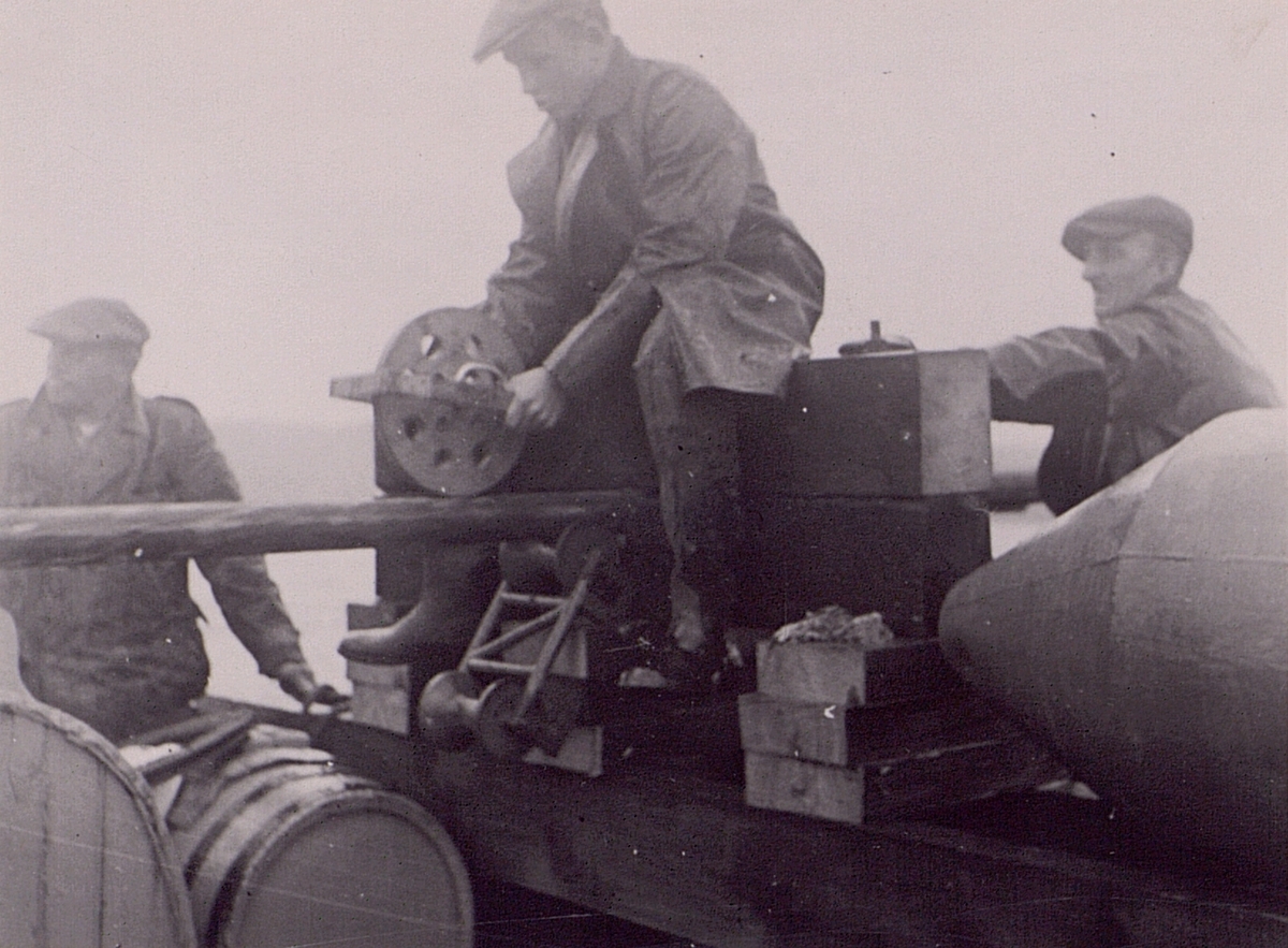 Sjökabel. Görveln. Lagerbockar med handbromsar, ritning 491100 voro nykonstruerade och begagnades för första gången vid denna utläggning. 1949.